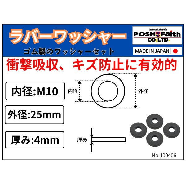 100406 ポッシュ POSH ラバーワッシャーセット 内径10mm 外径25mmx厚さ4mm 4個入り