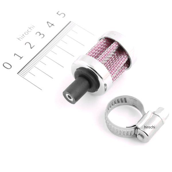 ブリーザーホースフィルターです取付外径Φ9 フィルター部Φ25×47mmホースエンドに装着して、オイルの飛散を防ぐためのブリーザーフィルターです。固定用のバンド付