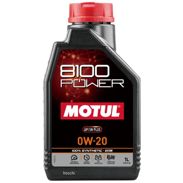 モチュール MOTUL 4輪エンジンオイル 8100 POWER容量:1LSAE粘度:0W-204ストロークエンジンオイル100%化学合成小排気量ターボ車両やハイブリッド車両に向け開発したエンジンオイルです。優れた低摩擦特性によりエンジン効率を高め、高い省燃費性能を発揮。※パッケージは予告なく変更になる可能性がございます。