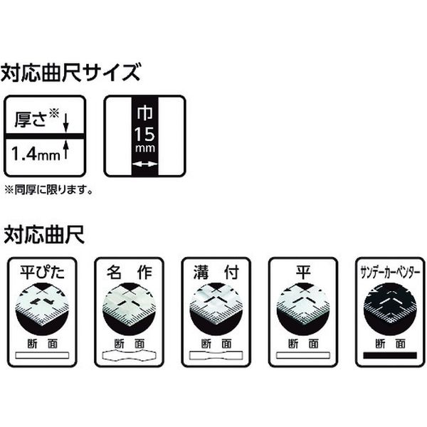 ・角が薄く平たいので細かい材料にもピタリと張り付き、ケガキやすく測りやすくなっています。・対応する曲尺(15mm巾)に取り付けて長いケガキ線が引けます。・突き当て位置を変えることで45°のケガキ線が引けます。・材料のケガキ作業に使用。・長辺(mm):160・短辺(mm):85・幅(mm):15・厚さ(mm):14・目盛仕様:cm目盛・長さの許容差:±0.2mm・直角度:100mmにつき0.1mm以下・全長(mm):160・曲尺:ステンレス・ストッパー本体:ABS樹脂、ねじ:鉄、板ばね:銅・曲尺平ぴた15cm・曲尺用ストッパー15mm巾用・対応曲尺サイズ 厚さ14mm 巾15mm、角厚タイプは角部根元まではスライドできません。・生産国 中国・JANコード 4960910124370・質量 40g・コード:215-0121 ・品目:12437