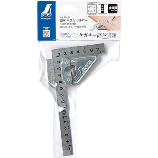 ・丈夫な金属性で熱に強く、溶接作業にも使用できます。・バーニア目盛付で0.1mm単位の測定が可能です。・角が薄く平たいので細かい材料にもピタリと張り付き、ケガキやすく測りやすくなっています。・対応する曲尺(15mm巾)に取り付けて長いケガキ線が引けます。・突き当て位置を変えることで45°のケガキ線が引けます。・直角・45度・平行線のケガキ、逆向きに取り付けると高さ測定に。・長辺(mm):170・短辺(mm):100・幅(mm):100・厚さ(mm):12・目盛仕様:cm目盛・長さの許容差:±0.2mm・直角度:100mmにつき0.1mm以下・全長(mm):170・対応曲尺サイズ:厚さ1.4mm以下、巾:15mm・ストッパー角度精度:100mmにつき0.2mm以下・曲尺:ステンレス・ストッパー本体:亜鉛、ねじ:鉄、板ばね:銅・ストッパーは巾15mmの曲尺にしかしようできません。・生産国 日本・JANコード 4960910124820・質量 105g・コード:242-8962 ・品目:12482