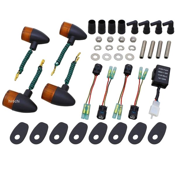 ポッシュ POSH ボルトオンウインカーキット クラシカル砲弾22年-25年 カワサキ Z650RS18年-25年 カワサキ Z900RS18年-25年 カワサキ Z900RS CAFE22年-25年 カワサキ Z900RS SEカラー:ブラック/オレンジ・配線加工不要・ボルトオン設計【付属品】・専用ステーベース・変換カプラーコード・ICリレー・付属電球・フロント(S球)12v23w・リア(S球)12v23w【素材/材質】・ウインカー本体:亜鉛ダイキャスト製・スタッドボルト/ナット/ワッシャー類:ステンレス製【キット内容】・ウインカー本体x4個・M10X55スダッドボルトx4本・防水キャップx4個・延長ステー20mmx4個・変換カプラーコードx4セット・ウインカーリレーx1個・M10ワッシャースプリングワッシャーx各4個・ウインカーステーベースx8枚・必要なパーツ全て【生産国】ウインカー本体/レンズ/ソケット/ステーベース:日本製スダッドボルト、ナット、ワッシャー類は全てステンレス製でハイクオリティな仕上がりになっています。補修パーツも充実、安心してご使用して頂けます。