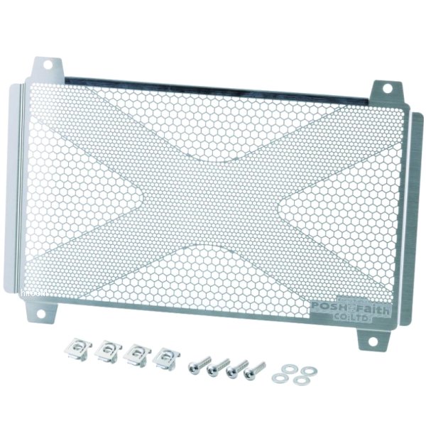ポッシュ POSH ラジエターコアガード18年 Ninja250ステンレス製、エッチング仕上げ。高速走行時の不意な飛び石や虫からラジエーターを守ります。