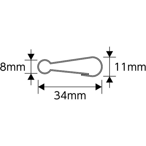 ・板状のフックで簡単に開閉できます。・標識などの吊り下げ表示に最適です。・標識などの掲示に。・縦(mm):11・横(mm):34・厚さ(mm):2.7・セット商品:10個1組・スチール(鉄ニッケルメッキ)・生産国 日本・JANコード 4932134008477・質量 20g・コード:114-0836 ・品目:137060