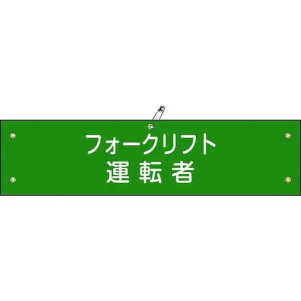 ・ビニール製の腕章です。・職務や役職などを分かりやすく表示しています。・熱圧着一体成型(ラミ加工)により文字を封入しているため、摩擦による文字消えはありません。・当該情報の明示、啓発に。・表示内容:フォークリフト運転者・縦(mm):90・横(mm):360・厚さ(mm):0.6・取付タイプ:ヒモ+安全ピン式・ラミネート加工・ハトメ穴5ヵ所(3.5mmφ-5)・基材:軟質塩化ビニール・安全ピン・ヒモ×2本・生産国 日本・JANコード 4932134103004・質量 30g・コード:814-9672 ・品目:139117