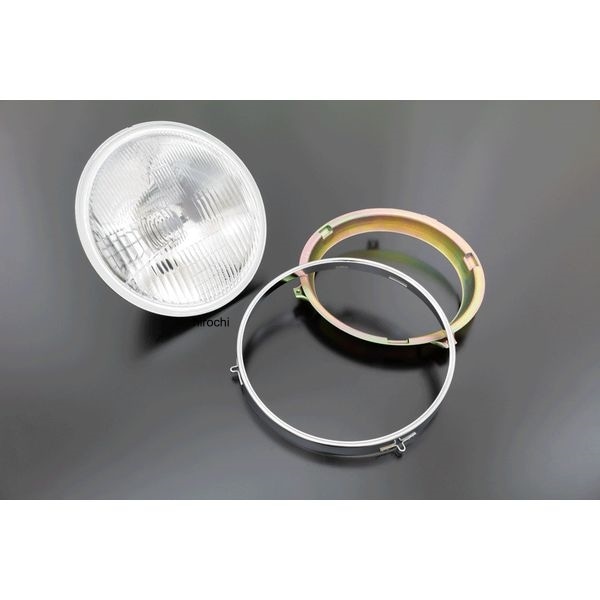 ピーエムシー PMC マウントリム付き コンベックスヘッドライト ・レンズには強化プラスティックを採用し、抜群の耐久性を実現した180φヘッドライトを90年代以降のネイキッドモデルに使用できるようインナーリム付ヘッドライトセット。・付属のH4バルブは、オールマイティー仕様の12V(55/60W)を採用し、DOT規格をクリアした車検対応品です。※ ポジションを点灯させる場合、配線の加工が必要となります。・ハロゲンライトの定番とも言える往年の凸型レンズを採用し、斬新なレンズカットにより理想的な配光性能を実現したヘッドライト。