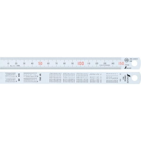 ・リーズナブルな価格設定です。・長さの許容差はJIS規格より優れています。・目盛はエッチングで刻み、黒クロムメッキを施しているので取れにくいです。・JIS1級品です。(14079、14087、14095、14109除く)・裏面にインチ換算表付です。(14001、14028、14036、14044)・長さの測定に。・全長(mm):175・幅(mm):15・厚さ(mm):0.5・呼び寸法(mm):150・上段(ピッチ):1mm・下段(ピッチ):0.5mm・測定範囲:0~150mm・JIS1級品・裏面インチ換算表付・ステンレス(SUS420J2)・生産国 中国・JANコード 4960910140011・質量 10g・コード:335-1688 ・品目:14001