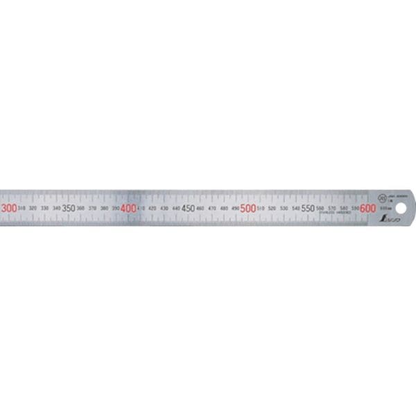 ・リーズナブルな価格設定です。・長さの許容差はJIS規格より優れています。・目盛はエッチングで刻み、黒クロムメッキを施しているので取れにくいです。・JIS1級品です。(14079、14087、14095、14109除く)・裏面にインチ換算表付です。(14001、14028、14036、14044)・長さの測定に。・全長(mm):640・幅(mm):30・厚さ(mm):1.2・呼び寸法(mm):600・上段(ピッチ):1mm・下段(ピッチ):0.5mm・測定範囲:0~600mm・JIS1級品・裏面インチ換算表付・ステンレス(SUS420J2)・生産国 中国・JANコード 4960910140363・質量 180g・コード:335-1700 ・品目:14036