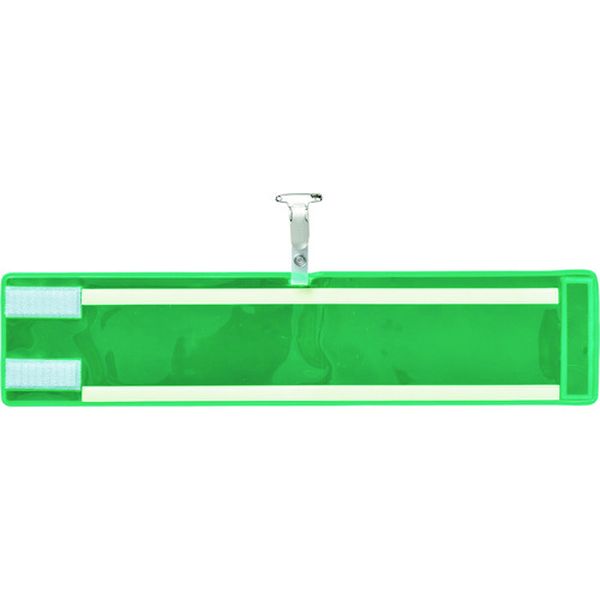 ・反射生地に高輝度クラスの蓄光材が上下に2本付いた視認性抜群のビニール製腕章です。・取り付け方が選べる両用ピン(安全ピン×クリップ)を採用しています。・特注品の制作も承ります。・職務や役職などの識別に。・色:緑・表示内容:緑無地・縦(mm):90・横(mm):400・腕周り(mm):330~360・厚さ(mm):0.7・反射×高輝度蓄光タイプ・面ファスナー+両用ピン式・蓄光シート:10mm×320mm・本体:軟質塩化ビニール、ポリエステル、蓄光材・生産国 日本・JANコード 4932134230021・質量 30g・コード:102-8501 ・品目:140402