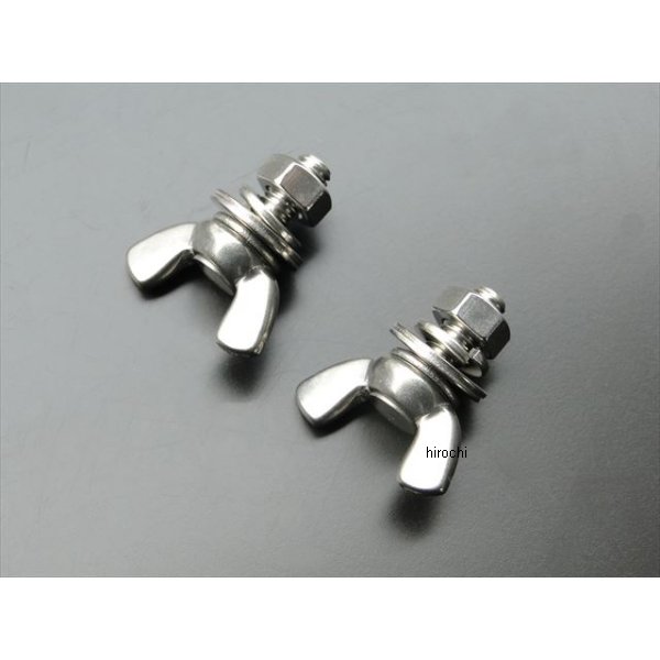 ビーアールシー BRC ナンバープレート取付用蝶ネジ車体にナンバープレートを取付けるためのボルト2本セットです。当時、流行っていた蝶ネジです。これを見て懐かしいと思った方も多いはず。この形状は旧車にとてもよく似合います。またバイクもカッコ良く見えます。絶対錆びないステンレス製で安心の日本製。「手で簡単にボルトが外されるんじゃないの」とのご質問にお答えいたします。手で外そうとしてもスプリングワッシャーが効いているため手では簡単に外せません。工具が必要です。※メーカー欠品の場合、長期納期となります。ご了承ください。