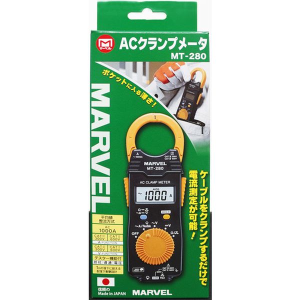 ・軽さ100g、薄さ16mmのポケットサイズです。・電流、電圧、抵抗、導通チェックが1台で測定可能です。・-25℃~65℃と広い使用温度範囲です。・コンクリート上1mからの落下に耐えます。・交流電流、電圧、抵抗、導通チェックに。・交流電流(A):1000・直流電圧(V):600・交流電圧(V):600・抵抗(Ω):41.99M・検波方式:平均値整流(MEAN)・電源(V):コイン型リチウム電池(CR2032)×1個(付属)・幅(mm):54・奥行(mm):16・高さ(mm):175・電源:コイン型リチウム電池(CR2032)×1個(付属)・最大測定導体径(mm):33・最大表示(カウント):4199・幅(mm):54・奥行(mm):16・高さ(mm):175・テストリード(70cm)・携帯用ケース・リチウム電池・取扱説明書・生産国 日本・JANコード 4992456307276・質量 100g・コード:148-7106 ・品目:MT280