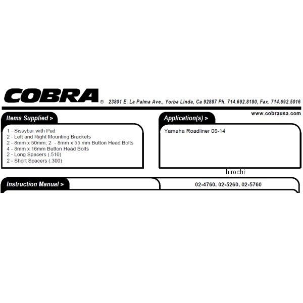 コブラ COBRA シーシーバー スタンダード08年-10年、12年-14年 ヤマハ XV 1900 Roadliner 06年-07年 ヤマハ XV1900 Roadliner 高さ:17インチ(432mm)付属:パッド、ブラケット、ボルト類・乗車に不可欠なアクセサリー・乗客の快適性と安全性を高め、荷物の持ち運びにも役立ちます。(荷物ラックは別途購入が必要)・クロムメッキの長方形のバースチール製。・標準、ショート、ミニバージョンがあります。・頑丈なマウントブラケットとフリーダムパッドが付属。・アメリカ製。