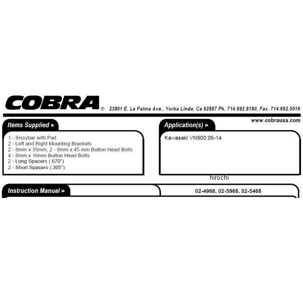 コブラ COBRA シーシーバー ショート06年-16年 カワサキ VN900C Vulcan 900 Custom 06年-16年 カワサキ VN900B Vulcan 900 Classic 高さ:14インチ(356mm)付属:パッド、ブラケット、ボルト類・乗車に不可欠なアクセサリー・乗客の快適性と安全性を高め、荷物の持ち運びにも役立ちます。(荷物ラックは別途購入が必要)・クロムメッキの長方形のバースチール製。・標準、ショート、ミニバージョンがあります。・頑丈なマウントブラケットとフリーダムパッドが付属。・アメリカ製。