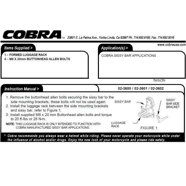 コブラ シーシーバー用 ラゲッジラック(FORMED)です。10年 ヤマハ XV 1700 Road Star Warrior 02年-09年 ヤマハ XV1700PC Road Star Warrior ※上記適合はCobra(コブラ)シーシーバー取付けが前提です。ラック単品では、取付け不可
