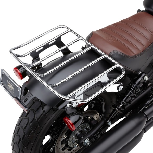 ラゲッジラック18年-22年 Indian Scout Bobber カラー:クロームサイズ:縦13-1/2"、横17"・コブラ独自のリリース機構を採用し、瞬時に取り付け・取り外しが可能・取り付け、取り外しにシンプルなプランジャータイプのスプリングを使用・コブラドッキングキットまたはハーレーダビッドソン4ポイントドッキングキット(別売)でラックに取り付け可能。・米国製