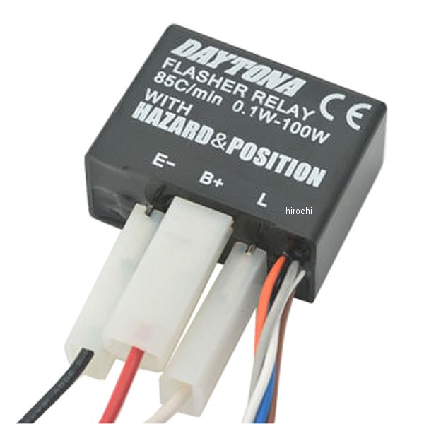 デイトナ LED対応ウインカーリレーCE規格取得済みDC12V専用品付属品:ラバーブラケット【特徴】ハザード&ポジション機能付きのLED対応ウインカーリレー3PIN。ハザード機能が付いていない車両にハザード機能を追加できます(別途スイッチが必要です)。0.1W-100Wまで使用可能。LEDから純正電球まで対応するウインカーリレー。アース付きの3P仕様とし、従来品「ウインカーリレー ハザード機能付き 95441(2P)」で対応しきれなかったLEDまでカバーします。HIGHSIDERシリーズのフロントポジション付きウインカーの取付に最適です。