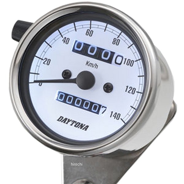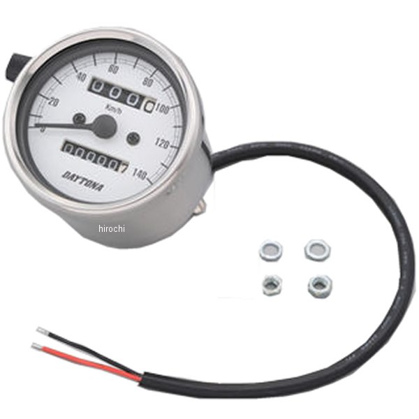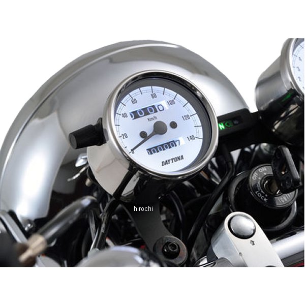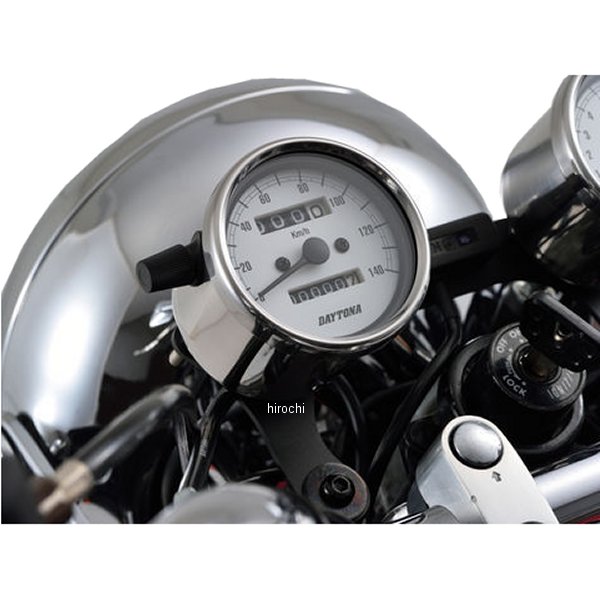 デイトナ 機械式スピードメーター φ60 LED照明 140km01年-09年 ヤマハ SR400ホディカラー:ステンレスバフ仕上げ。パネルカラー:ホワイトボディ素材:ステンレス【仕様説明】クラシカルなパネルデザインで140km/h表示のスピードメーターです。純正OEM工場による生産品のため高精度、高品質。バックライト照明はLED使用。※取り付けには、防振メーターステーが必要です。※スピードメーターは国産モデルで一般な「60km/h=1,400rpm」規格の純正機械式メーター車(メーターケーブルを使用する車両)であれば基本的に使用できます。メーター規格が異なる外車や、一部旧車などには使用できません。※12Vバッテリー車専用。バッテリーレス車、6Vバッテリー車(12V電装にコンバートしたモデルも含む)では正常に作動しません。※完全防水ではありません。メーター内外の気温差や湿度により、ガラス面が曇る場合があります。※純正メーターを取り外すことによって、各種インジケーターが使用できなくなる場合があります。必要に応じて別途ご用意ください。※メーターケーブルは消耗品です。アウターチューブに亀裂や破損があると、メーター内部に水分や油分、埃などが侵入し、故障の原因になります。機械式メーターを交換する際は必ずメーターケーブルの点検も同時に行ない、必要に応じて新品に交換してください。※スピードメーターとタコメーターは内部構造と文字盤色の違いにより、発光状態(特に夜間)の差が出てしまいます。あらかじめご了承ください。※ハーネスの結線は車両に合わせた加工が必要です。ギボシ端子等は別途ご用意ください。