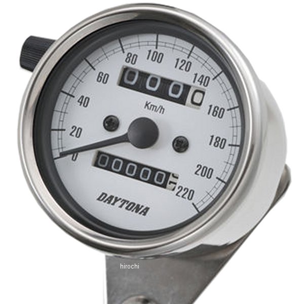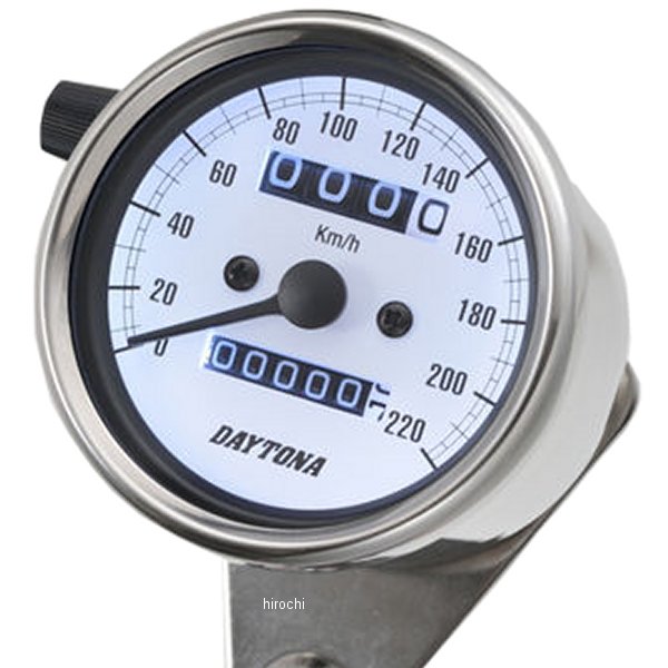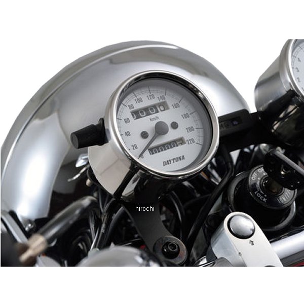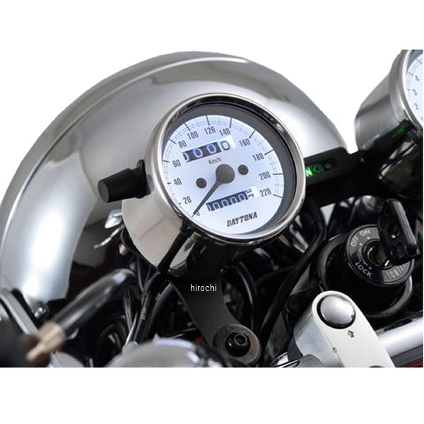 デイトナ 機械式スピードメーター φ60 LED照明 220km01年-09年 ヤマハ SR400ホディカラー:ステンレスバフ仕上げ。パネルカラー:ホワイトボディ素材:ステンレス【仕様説明】クラシカルなパネルデザインで220km/h表示のスピードメーターです。純正OEM工場による生産品のため高精度、高品質。バックライト照明はLED使用。※取り付けには、防振メーターステーが必要です。※スピードメーターは国産モデルで一般な「60km/h=1,400rpm」規格の純正機械式メーター車(メーターケーブルを使用する車両)であれば基本的に使用できます。メーター規格が異なる外車や、一部旧車などには使用できません。※12Vバッテリー車専用。バッテリーレス車、6Vバッテリー車(12V電装にコンバートしたモデルも含む)では正常に作動しません。※完全防水ではありません。メーター内外の気温差や湿度により、ガラス面が曇る場合があります。※純正メーターを取り外すことによって、各種インジケーターが使用できなくなる場合があります。必要に応じて別途ご用意ください。※メーターケーブルは消耗品です。アウターチューブに亀裂や破損があると、メーター内部に水分や油分、埃などが侵入し、故障の原因になります。機械式メーターを交換する際は必ずメーターケーブルの点検も同時に行ない、必要に応じて新品に交換してください。※スピードメーターとタコメーターは内部構造と文字盤色の違いにより、発光状態(特に夜間)の差が出てしまいます。あらかじめご了承ください。※ハーネスの結線は車両に合わせた加工が必要です。ギボシ端子等は別途ご用意ください。