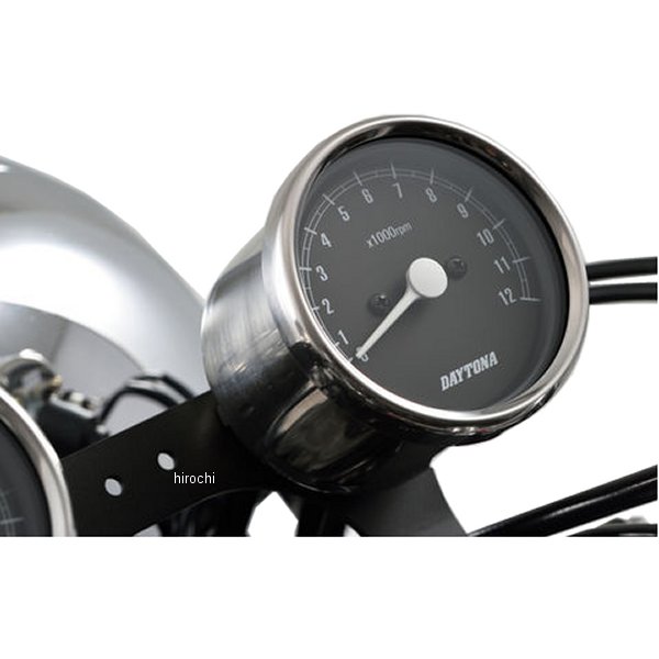 デイトナ 機械式タコメーター φ60 LED照明 12000rpm01年-09年 ヤマハ SR400ホディカラー:ステンレスバフ仕上げ。パネルカラー:ブラックボディ素材:ステンレス【仕様説明】クラシカルなパネルデザインで12,000rpm表示のタコメーター(ギヤ比1:5)。純正OEM工場による生産品のため高精度、高品質。バックライト照明はLED使用。※取り付けには、防振メーターステーが必要です。※タコメーターはSRなどに採用されている「ギヤ比1:5」(クランク5回転=タコメーターケーブル1回転)規格の純正機械式タコメーター(タコメーターケーブルを使用する車両)のみ適合。機械式タコメーターが標準装備されていない車両(FTRやTWなど)はもちろん、ギヤ比が異なる車両には使用できません。※12Vバッテリー車専用。バッテリーレス車、6Vバッテリー車(12V電装にコンバートしたモデルも含む)では正常に作動しません。※完全防水ではありません。メーター内外の気温差や湿度により、ガラス面が曇る場合があります。※純正メーターを取り外すことによって、各種インジケーターが使用できなくなる場合があります。必要に応じて別途ご用意ください。※メーターケーブルは消耗品です。アウターチューブに亀裂や破損があると、メーター内部に水分や油分、埃などが侵入し、故障の原因になります。機械式メーターを交換する際は必ずメーターケーブルの点検も同時に行ない、必要に応じて新品に交換してください。※スピードメーターとタコメーターは内部構造と文字盤色の違いにより、発光状態(特に夜間)の差が出てしまいます。あらかじめご了承ください。※ハーネスの結線は車両に合わせた加工が必要です。ギボシ端子等は別途ご用意ください。