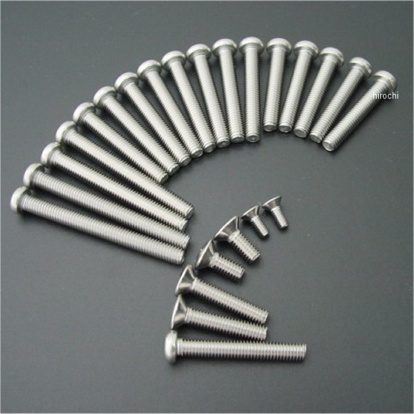 ビーアールシー BRC ステンレスエンジンカバーボルト 純正タイプ75年-77年 ホンダ CB400F 398cc/408ccポイント、クラッチ、ジェネレーター、チェンジ、各カバーを固定するボルトセットです。耐食性の高いステンレス製。純正形状と同じナベ、サラボルト。・オーバルスクリュー 6×30×2純正部品93700-06030に適応 ※ポイントカバーに使用・オーバルスクリュー 6×16 ×2純正部品93700-06016に適応 ※クラッチレリーズカバーに使用こちらのセットには6×15が含まれますが使用に問題ございません。・パンスクリュー 6×35×1純正部品93500-06035に適応 ※クラッチカバーに使用・パンスクリュー 6×40×7純正部品93500-06040に適応 ※クラッチカバーに使用・パンスクリュー 6×60×2純正部品93500-06060に適応 ※クラッチカバーに使用・オーバルスクリュー 4×12×2純正部品93700-04012-0Bに適応 ※ダイナモカバーBに使用こちらのセットには4×10が含まれますが使用に問題ございません。・パンスクリュー 6×40×2純正部品93500-06040に適応 ※ダイナモカバーAに使用・パンスクリュー 6×55×2純正部品93500-06055に適応 ※ダイナモカバーAに使用・パンスクリュー 6×35×4純正部品93500-06035に適応 ※チェンジカバーに使用※メーカー欠品の場合、長期納期となります。ご了承ください。
