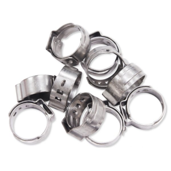 16-0062 ガッツクローム ホースクランプ 17/32 10個セットOETIKER製ステンレスイヤークランプです。CVキャブレターのホース繋ぎ口やフューエルタンクの連結部分、一部オイルタンクのホースなどに適合します。サイズ17/32インチ用、締め付け範囲13.7-16.2 mm※現車のホースサイズをご確認ください。※取り付けには専用工具が必要です。メーカー:V-TWINOEM品番 :10014