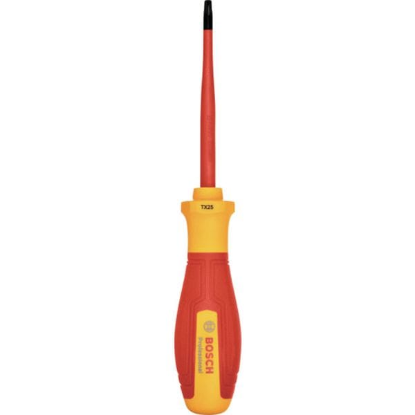 ・安全と品質のVDE認証工具、ボッシュ絶縁ハンドツールシリーズです。・VDE・GS規格対応です。・1000V絶縁仕様です。・IEC60900適合です。・スリムシャフトです。・耐久性の高いチップ仕様です。・ソフトグリップです。・ネジの締め・緩めに。・刃先:トルクス(ヘックスローブ)T25・軸長(mm):100・全長(mm):220・被覆なし部軸径(mm):5.5・被覆なし部軸長(mm):16・先端形状:トルクス(ヘックスローブ)・先端サイズ:T25・グリップ径(mm):38.5・被覆なし軸長(mm):16・先端軸径(mm):5.5・耐電圧:1000V・本体寸法(mm):38.5×220×38.5・1000V絶縁仕様・シャフト:S2鋼・グリップ:ポリプロピレン(PP)、熱可塑性エラストマー(TPE)・1本・生産国 中国・JANコード 4053423246582・質量 96g・コード:687-5838 ・品目:1600A02NC8