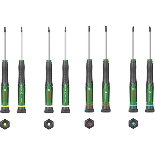 ・人間工学に基づいた使いやすい、ボッシュDIYハンドツールシリーズです。・ソフトグリップと人間工学に基づいたデザインです。・回転キャップはソフトグリップで覆われており、六角形の形状で転がり防止です。・クラス最高の硬質S2スチールドライバーです。・直感的なカラーコーディング:ハンドルと背面に色分けされたサイズと形状の表示があります。・収納と持ち運びに便利な布製バッグです。・ネジの締め付け、緩め作業に。・セット内容:SL1.5/2.0/2.5/3.0、PH000/00/0、TX5/6/8/9、H1.5/2.0・セット内容(本):13・ハンドルサイズ(mm):18・先端形状:プラス、マイナス、ヘックスローブ(トルクス)、六角・先端サイズ:PH000/00/0、SL1.5/2.0/2.5/3.0、TX5/6/8/9、HEX1.5/2.0・軸長(mm):60・軸径(mm):3・本体寸法(mm):156×18・刃先マグネットあり・シャフト:S2スチール・ハンドル:PP+TPR・13本(SL1.5/2.0/2.5/3.0、PH000/00/0、TX5/6/8/9、H1.5/2.0×各1本)・布製バッグ・パッケージに「10year Guarantee」と記載されていますが、この保証は日本では行っておりません。・生産国 中国・JANコード 4053423255119・質量 476g・コード:689-3555 ・品目:1600A02Z9N