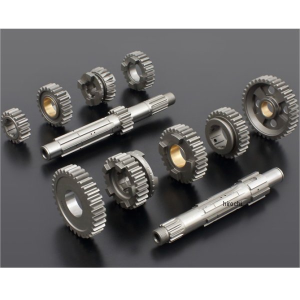 ピーエムシー PMC ミッションASSY (MCCOY クロスレシオ) STDミッションのウィークポイントを排除し、ミッション抜けを防ぐアンダーカットまでも施しました。まさに革新的なミッションシリーズです。・ギア抜けを起こし易い、線接触のラウンド状のドッグを、面で接触する スクエア状に変更。・ハイパワーに十分耐える強度を備えながらも、騒音と回転抵抗を抑えた ギア歯形を設計。・摩擦抵抗と摩耗性に優れる材質を吟味し、フリーギア部に特殊メタルを採用。・レシオはJ系ミッションを参考にしながら、Mccoy独自のクロスレシオに設定。・もちろんSTDレシオはキックスターターを仕様可能。