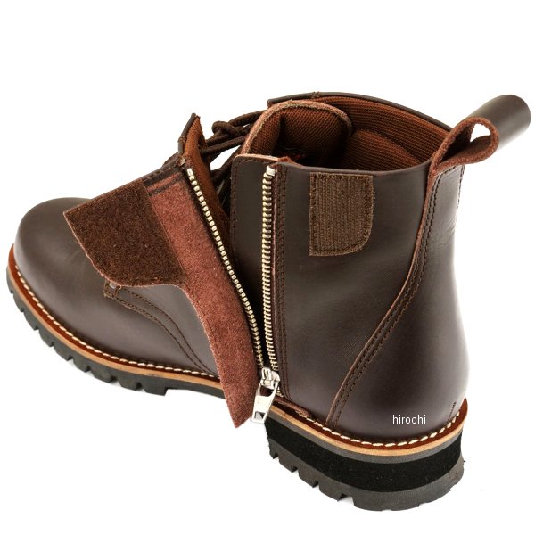デイトナ HBS-003 ショートブーツサイズ:24.0cmカラー:ダークブラウン素材:ア ッパー部分:牛革、内装:ポリエステル、ソール部分:合成ラバー※防水性ありません。シフトパッド内蔵サイドジップタイプオーソドックスなデザインに、モーターサイクル用として必要な機能をつめ込んだライディングブーツ。ダークブラウンはハトメなどにシックなアンティークブラウンの金具を採用。靴の雰囲気を左右するウェルトも革製にしました。レースアップでオーソドックスなデザインのショートブーツ。レザーの色に合わせたシューレースカラーでシックな見た目に。