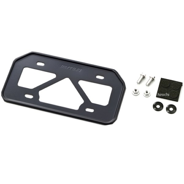 デイトナ ナンバープレートホルダーMカラー:ブラックサイズ:Mタイプ:原付用山型【付属品】・アルミナンバープレート×1・フランジスペーサー×2個・フランジボルト(M6×15mm)×2個・フランジナット(M6)×2個・ウレタンスポンジ×4個【仕様説明】・新保安基準適合・振動によるナンバープレートのひび割れや破損を予防します。・1mm厚アルミ材を大胆に肉抜きすることで必要な強度を保ちつつ極限まで軽量化しました。・板厚が薄いのでフチのプレスラインもシャープになりスタイリッシュ。ナンバープレートのドレスアップに最適です。※取付工具は付属しません。※必ず取り付けするナンバープレートの形状をご確認ください。※取り付けするフェンダーの形状によっては装着できない場合があります。※プレート自体に防振効果はありません。※付属のボルトで長さが足りない場合は、車両に合わせて適切な長さのボルトを別途ご用意ください。