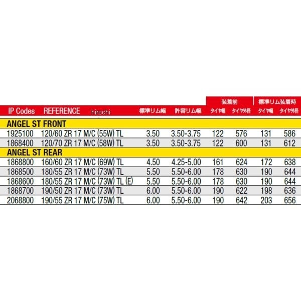 ピレリ PIRELLI ANGEL ST用途:リア用リム径:17インチチューブレスタイヤ標準リム幅(インチ):5.5許容リム幅(インチ):5.50-6.00偏平率:55%構造:ラジアル荷重指数:73(365kg)速度記号:W(270超km/h)1本売り