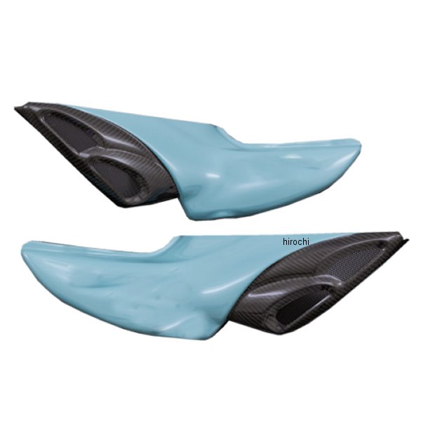 ピーエムシー PMC ARCHI D.B.Iカバーカワサキ Z900RS、Z900RS CAFEカラー:ファントムブルーメッシュカラー:ブラック※今秋発売予定両サイドには段違いで二つの膨らんだバブル形状がセットされ、強烈なハイフローエアーの吸引を連想させる大口径エアーインテークの開口部には、メッシュネットも装備され一層攻撃的なインパクトとサイドビューの十分過ぎる存在感を演出させます。サイドカバー本体部はZ1を連想させる”シンプルかつ立体的な造形美”と同時に、エアインテーク部のボリュームに違和感のないグラマラスで流麗なフォルムにモディファイすることでタンクからテールカウルに至るシルエットをスパルタンなイメージに変貌させます。インテーク部と称される前方部は綾織カーボンファイバー、後部のサイドカバー本体部はFRPのグラスファイバーを使用するハイブリッド構造。FRPのボディ本体は、各純正同等色の塗装仕上げです。タンクを傷つけないよう保護するラバーモールが付属します。
