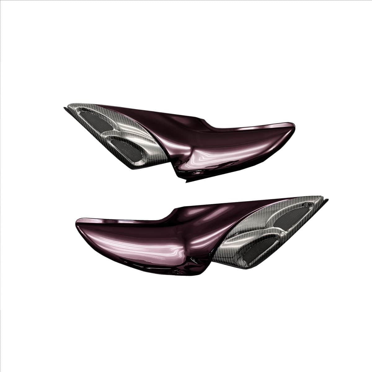 ピーエムシー PMC ARCHI ダブル・バブル・インテーク18年-25年 カワサキ Z900RS/CAFEカラー:キャンディトーンレッド前方素材:綾織カーボンファイバー後部素材:繊維強化プラスチック/グラスファイバー【仕様説明】両サイドには段違いで2つの膨らんだバブル形状が配置され、大口径のエアーインテークが強烈な吸引を連想させます。メッシュネットが装備された開口部は、より攻撃的な印象を与えサイドビューの存在感を際立たせています。サイドカバー本体部はZ1を連想させるシンプルかつ立体的な造形美と同時にエアインテーク部のボリュームに違和感のないグラマラスで流麗なフォルムにモディファイすることでタンクからテールカウルに至るシルエットをスパルタンなイメージに変貌させます。インテーク部と称される前方部は綾織カーボンファイバー、後部のサイドカバー本体部はFRPのグラスファイバーを使用するハイブリッド構造。FRPのボディ本体は、各純正同等色の塗装仕上げです。※タンクを傷つけないよう保護するラバーモールが付属します。
