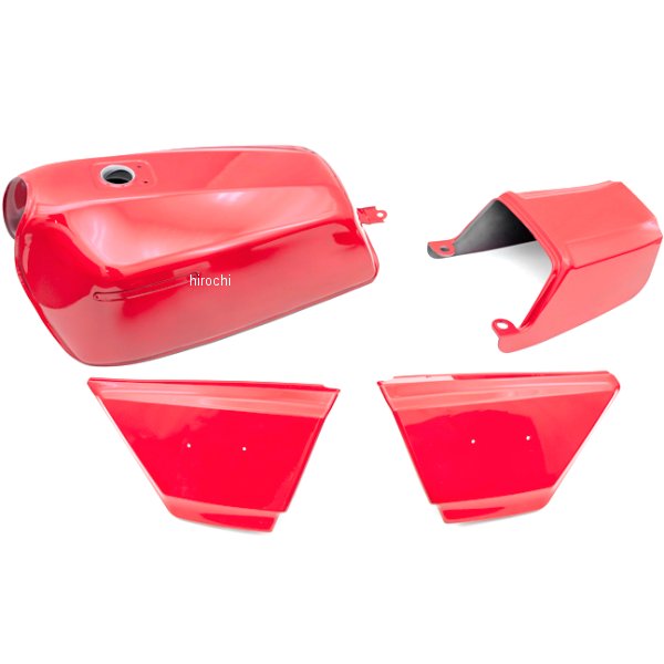 194-1010 ピーエムシー PMC 外装セット レッド Z400FXカワサキ Z400FXカラー:レッドZ400FX初期型のE1に採用されていたファイアクラッカーレッド。国内の職人により調色、塗装された色合いは当時の塗り方や色味を忠実に再現しております。タンク、テールカウル、サイドカバー左右の4点セット。
