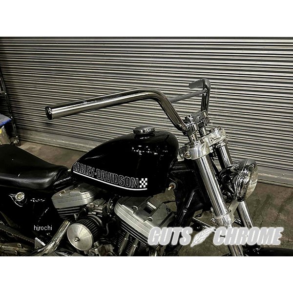 2000-0510 ガッツクローム クロームMX BAR ヘコミ有クローム MX BAR 82年以降 配線用ヘコミ有りパイプ径 1インチ(25.4mm) 幅約83cm 高さ約12cm プルバック約13cm センター幅約12cm(ローレット部分の端から端)11cm※FXSTS、FLSTSにはセンター幅が合わないため取り付けは出来ません。
