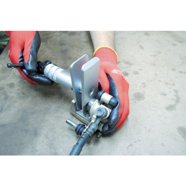 ・バイクなど小型車両のディスクブレーキピストンの、押し戻しに最適なコンパクトタイプです。・プレートは薄側と厚側の2種類装備で、厚側を使用することで、自動車のブレーキピストンにも対応できます。・ブレーキキャリパーのブレーキピストン押し戻しに。・全長(mm):125・開口幅(mm):5.5~54(薄側)、11.5~60(厚側)・ハンドル長(mm):110・プレートサイズ:(薄側)幅40mmX奥行30mmX厚み2.6mm、(厚側)幅40mmX奥行46mmX厚み5.6mm・カーボンスチール・ピストンの形状によっては、対応範囲内でも使用できない場合があります。・先端アタッチメントにはローレット加工が施されているため、ピストン内側にキズを付ける場合があります。・生産国 台湾・JANコード 2007000011720・質量 700g・コード:784-8315 ・品目:2007000011720