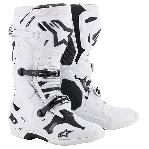 アルパインスターズ ブーツ テック10サイズ:12(30.5cm)カラー:ホワイトインナーブーティー付属【仕様説明】世界中のトップライダーが認める究極のブーツ。革新的な進化を遂げたTECH10が満を持してリリース。新しいダブルピポッドモーションシステムを採用することにより柔軟性と正確なコントロールが格段に向上。またTECH10独自のダイナミック・ヒール・コンプレッション・プロテクターはクラッシュ時の高い衝撃エネルギーを吸収しつつも確実にライダーの足首を保護。ブーツ本体は極限まで軽量化し、安全性と強度はレベルアップすることに成功。【機能】・内甲側と側面の新しいダブルピポッドシステムは、柔軟性と正確なコントロールのレベルを向上。・デュアルフロントブレードシステムと衝撃吸収インサートによる前部の屈曲コントロールは衝撃を軽減、吸収する。・過伸展を防止するよう再設計されたTPU製のリアブレードシステムは、屈曲コントロールの改善と、 耐衝撃性を実現。・TECH10独自のダイナミック・ヒール・コンプレッションプロテクター(特許取得)は、クラッシュ時の衝撃エネルギーを吸収する発砲ポリフォームを備える。・独自のTPU構造と、ゴムコンパウンドパネルがグリップ性、耐久性、耐熱性を提供。また、革新的な素材の組み合わせにより、パネルの軽量化、薄型化を実現。・ふくらはぎの形状に沿ったプロテクターは脚後部まわりを包み込み、過度のねじれ力を吸収。・シンプレートは表面積を減らし、軽量化。・再設計されたソールはフットペグとのグリップ性を高め、泥や水の排出を改善。・解剖学に基づいて再設計された新しいメカニカルバックルクロージャーシステムは軽量化を実現。 耐久性と強度が向上。・アルパインスターズのブーツは全てのソール・バックル交換とブーツ修理サービスを提供。【インナーブーティー】・内甲側と外側のトゥーションバーは足首と脚がねじれるのを防ぎ、自然で自由な動きを可能にする。・徹底的に軽量化し、容易で素早い着用を可能にするプルオンデザイン。・TECH10フレックスサポートシステムとシームレスに連携。・踵から足首にかけてはTPUプロテクターと衝撃吸収パッドでガード。コントロール性が必要な前足側は薄型で柔軟性のある素材を採用。・取り外し可能のEVA製インソールは快適にサポート。・ソフトマイクロ製ゲートルが過剰な水や泥などの侵入を防ぐ。・3Dオープンセルフォームを備えたポリファブリック製ライニングはかかと部分に滑り止め加工を施し、脚をブーツ内の定位置にキープ。