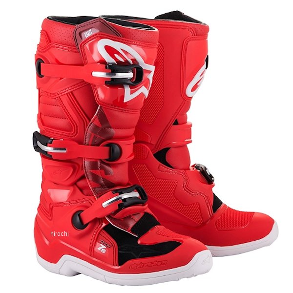 アルパインスターズ ブーツ TECH10サイズ:7(25.5cm)カラー:レッド世界中のトップライダーが認める究極のブーツ。足首に採用されたダブルピポッドモーションシステムにより柔軟で正確なコントロール性を格段に向上。またかかとに備えたTECH10独自のダイナミック・ヒール・コンプレッション・プロテクターはクラッシュ時の高い衝撃エネルギーを吸収し堅固に保護。ブーツ本体を極限まで軽量化しながらもレベルアップした安全性と強度を併せ持つ事に成功。・プロテクション性能を損なうことなく表面積を減らし軽量化と通気性を両立する肉抜きされたシンプレート。・足首両サイドにダブルピボットシステムを備え、ねじれなどの横方向への動きを制限し、足首を守りながら柔軟で正確なコントロール性を実現。・足首の動きをスムーズにし、衝撃を軽減する、フロントに備えたブレード型プロテクター&衝撃吸収ソフトプロテクター。・TECH10独自の軽量一体型成型フットシャーシを採用。・かかとに発泡性ポリフォームを備え、足首や下腿からくる疲労やクラッシュによる衝撃を軽減。※DHCP(ダイナミックヒールコンプレッションプロテクター)として特許取得。・フットシャーシと一体のTPU製ブレード型プロテクターは、足首の過伸展を防ぎ衝撃から保護。・再設計されたソールはグリップ力&泥や水の排出性が向上。・ブーツとのフィッティングを深めプロテクション性能を上げるインナーブーティーを装備。足首の操作性とねじれなどの横方向への動きを制限するヒンジを足首に配置。・CE EN13634取得