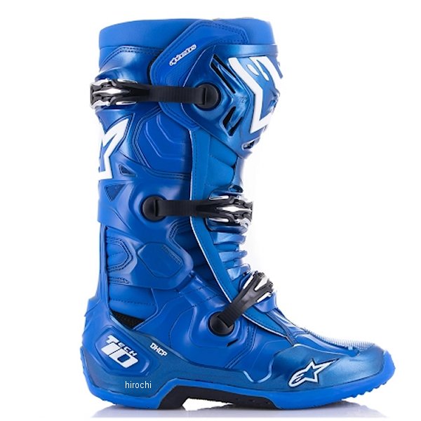 アルパインスターズ ブーツ TECH10サイズ:10(29.0cm)カラー:ブルー/ブラック世界中のトップライダーが認める究極のブーツ。足首に採用されたダブルピポッドモーションシステムにより柔軟で正確なコントロール性を格段に向上。またかかとに備えたTECH10独自のダイナミック・ヒール・コンプレッション・プロテクターはクラッシュ時の高い衝撃エネルギーを吸収し堅固に保護。ブーツ本体を極限まで軽量化しながらもレベルアップした安全性と強度を併せ持つ事に成功。・プロテクション性能を損なうことなく表面積を減らし軽量化と通気性を両立する肉抜きされたシンプレート。・足首両サイドにダブルピボットシステムを備え、ねじれなどの横方向への動きを制限し、足首を守りながら柔軟で正確なコントロール性を実現。・足首の動きをスムーズにし、衝撃を軽減する、フロントに備えたブレード型プロテクター&衝撃吸収ソフトプロテクター。・TECH10独自の軽量一体型成型フットシャーシを採用。・かかとに発泡性ポリフォームを備え、足首や下腿からくる疲労やクラッシュによる衝撃を軽減。※DHCP(ダイナミックヒールコンプレッションプロテクター)として特許取得。・フットシャーシと一体のTPU製ブレード型プロテクターは、足首の過伸展を防ぎ衝撃から保護。・再設計されたソールはグリップ力&泥や水の排出性が向上。・ブーツとのフィッティングを深めプロテクション性能を上げるインナーブーティーを装備。足首の操作性とねじれなどの横方向への動きを制限するヒンジを足首に配置。・CE EN13634取得