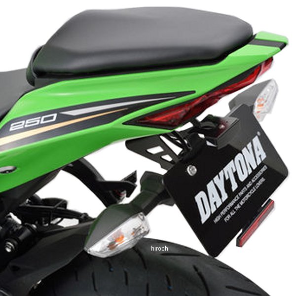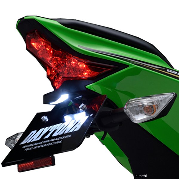 デイトナ LED フェンダーレスキット21年-22年 カワサキ Ninja ZX-25R23年-24年 カワサキ Ninja ZX-25R SE24年-25年 カワサキ Ninja ZX-4R/RR【特徴】純正ライセンスランプを使用するフェンダーレスキットに比べて軽量化・コンパクト。専用取付ステーのほか、保安基準に適合するLEDライセンスランプや、公認リフレクター&ステーも付属。取り付けに必要な部品が全て入ったボルトオンキットです。純正リアウインカー対応。荷掛けフック使用可能。2021年新基準ナンバー角度対応品。※軽量&コンパクト設計のため、当社軽量ナンバープレートスタビライザー(リフレクター付き)以外の同時装着はできません。市販のナンバープレートベースなどを取り付けると、荷重オーバーにより本品を破損させる原因になります。