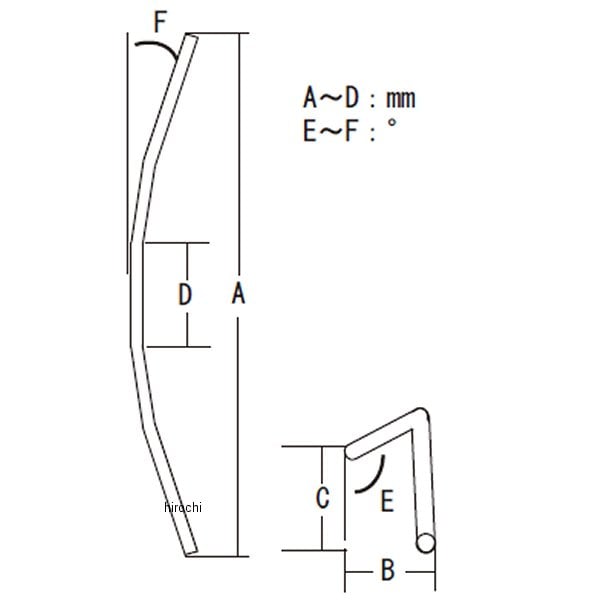 キジマ ハンドル コンチII サイズ:寸法/A:700mm、B:80mm、C:140mm、D:120mm、E:95°、F:30°ハンドル径:22.2mm(標準)カラー:クロームメッキ素材:スチール
