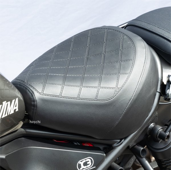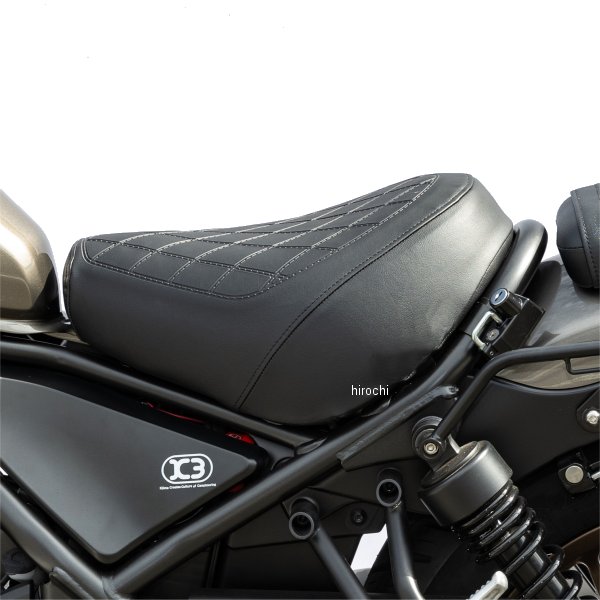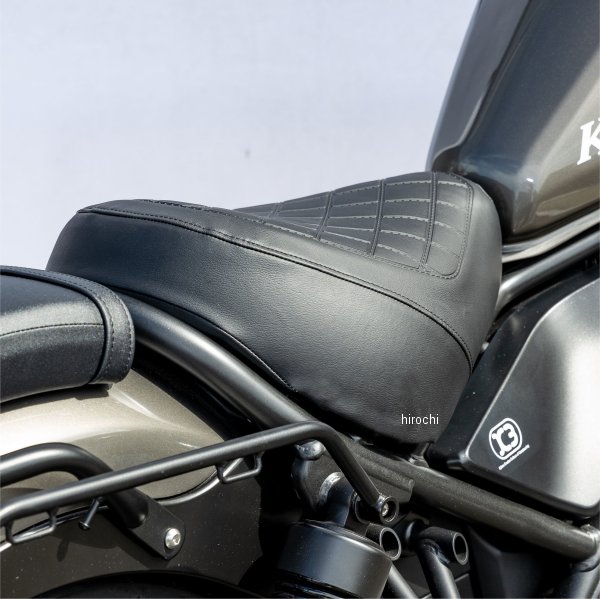 キジマ シート リーチタイプ フロント ダイヤモンドステッチ17年以降 ホンダ レブル25017年以降 ホンダ レブル250 S Edition17年以降 ホンダ レブル500【2BK/8BK-MC49・2BL/8BL-PC60】カラー:ブラック純正比(着座位置):前方へ/約10mm・アップ/約30mm適応身長:160~168cm ※あくまでも目安となります。※キジマ製フィフティーバーハンドル(204-3387)との組み合わせで、小柄な女性でも安心して乗れるようになります。純正シートの場合、足を下ろした際にシート座面から身体を移動することが出来ず、足を不自然な状態で下ろす形になります。本製品に変更することで上半身にも余裕がある自然な態勢で足を下ろすことができます。その自然なポジションが長距離のツーリングでも疲れを軽減させます。腰が固定されて乗りにくさを感じてしまう純正シート。それでも犠牲に出来ない足つきの良さ。座面をアンコ盛りすることでシートポジションを前に移動し、着座した際のホールド感と抵抗なく足を出せる自由度を実現したリーチシートにSエディションスタイルのダイヤモンドステッチ風デザインが登場。カラーも純正に合わせたブラックとブラウンの2カラー設定。車載工具収納スペース、収納袋を設定。