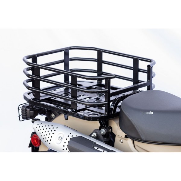 キジマ リアキャリアラック 20年- CT125 (JA55/65) ブラック20年- ホンダ CT125 (JA55/65) CT125ハンターカブの純正キャリアの上に載せるバスケットタイプのキャリアラック。若干の仕様変更を行ない、モデルチェンジ後のJA65型にも対応いたしました。普段の買い物から、かさばる荷物の積載、まとまりのない仕事道具などをラフに積み込める新感覚キャリア。ボックス等とは異なる自由度の高い使用感、ネットなどをひっかけることで積載物の固定が容易になります。無骨なデザインと実用性がマッチングしたラックで、用途に合わせた使い方が可能です。キャンプツーリングなら、外側にバッグや小物もぶら下げられます。街乗りならネットとの併用であれもこれもと詰め込み出来ます。材質:スチール製色:ブラック最大積載重量:10kgサイズ:内寸:縦440×横370×深さ150mm