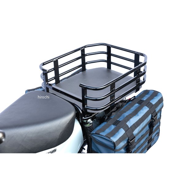 キジマ リアキャリアラック ブラック 18年- スーパーカブ、クロスカブ50/11018年-25年 ホンダ クロスカブ18年-21年 ホンダ クロスカブ 11022年-26年 ホンダ クロスカブ11018年-26年 ホンダ スーパーカブ11018年-25年 ホンダ スーパーカブ50スーパーカブ・クロスカブの純正キャリアの上に載せるバスケットタイプのキャリアラック。普段の買い物から、かさばる荷物の積載、まとまりのない仕事道具などをラフに積み込める新感覚キャリア。ボックス等とは異なる自由度の高い使用感、ネットなどをひっかけることで積載物の固定が容易になります。無骨なデザインと実用性がマッチングしたラックで、用途に合わせた使い方が可能です。キャンプツーリングなら、外側にバッグや小物もぶら下げられます。街乗りならネットとの併用であれもこれもと詰め込み出来ます。小物の落下を防ぐために、ラック底部へ敷くマットを付属いたしました。※当社リアキャリア(210-2691/268/2681)及び、ダブルシート(207-395)と併用は不可材質:スチール製色:ブラック最大積載重量:10kgサイズ:内寸:縦440×横370×深さ150mm