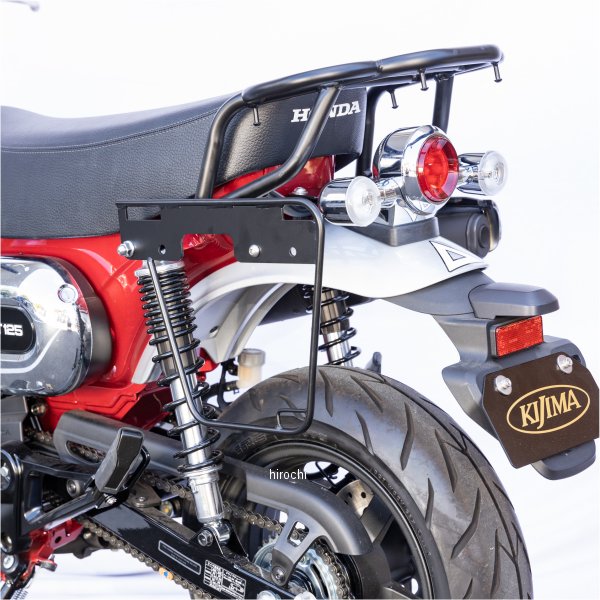 キジマバッグサポート 22年- DAX125 マットブラック 22年- ホンダ DAX125タンデムでの使用を考えると後ろ側への装着になってしまうバッグサポートをソロでの使用時におけるバランスを考慮し、前後に50mm移動させて取付できるように設計しました。サポート本体にベルト固定用のホールも設定し、確実な固定が出来るようにしました。純正タンデムグリップおよび当社製リアキャリア(210-2788)の併用が可能。スチール製ブラック仕上げ