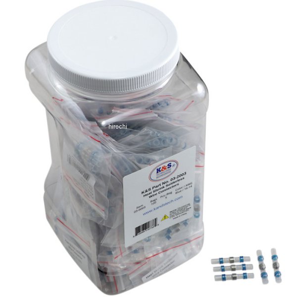 ケーアンドエス K&S 熱収縮コネクター 青ハンダ付け不要ヒートガンでチューブを収縮、接続対応配線 AWG 16?145個入 x 100パック