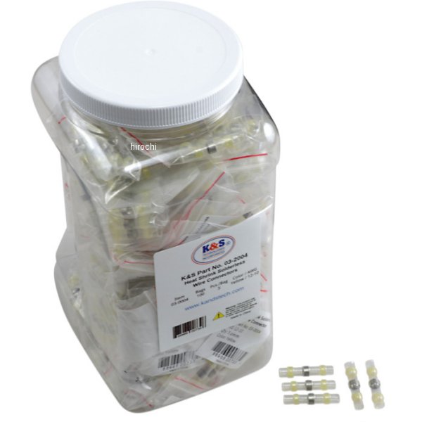 ケーアンドエス K&S 熱収縮コネクター 黄ハンダ付け不要ヒートガンでチューブを収縮、接続対応配線 AWG 12?105個入 x 100パック