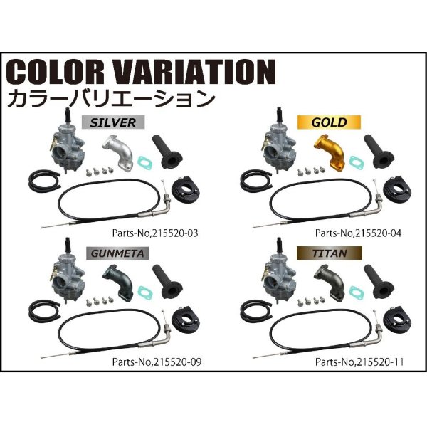シフトアップ SHC-18 キャブレターキットホンダ 12Vモンキー/ゴリラ Z50J-2000001~2699999ホンダ 12Vモンキー/ゴリラ AB27-1000001~1899999(FI車除く)【カラー】チタン【キット内容】SHC-18 キャブレター・ビレットマニホールドキット国内自社生産アルミ削り出しボディハイスロットルケース【BLACK】&スリーブ44φ90mmロングスロットルケーブル【SHC18キャブレター組み込み済みパーツ】SHIFTUP製メインジェット #82SHIFTUP製パイロットジェット #35( M/J 、P/J 共に京浜PCタイプと互換性があります)SHIFTUP製 専用ジェットニードル【商品説明】SHC-18キャブレター/ビレットマニホールドキット/ハイスロットルキットをセットとしたSHIFTUP製モンキー88cc(ノーマルヘッド仕様)向けのキャブレターキットです。