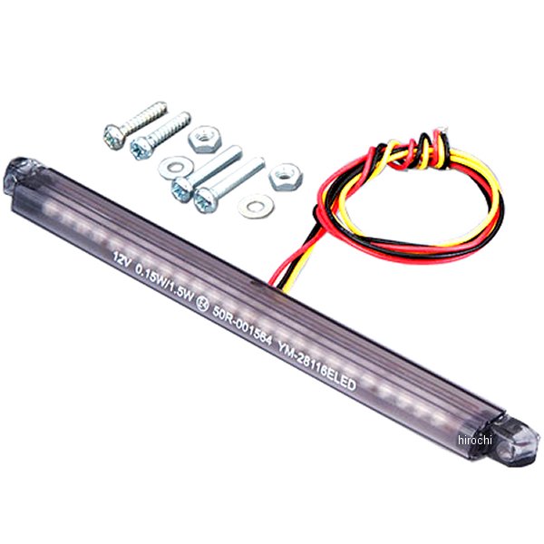 キジマ LEDテールランプ スリムラインダブルカラー:スモークサイズ:縦7.8mm×全長130mm×高さ9.5mm取付ネジ間ピッチ:120mm取付ビス:M3消費電力:12V 尾灯0.15W/制動灯1.5WECE認証番号:50R 001564明るい、省電力、柔構造、カスタムに重宝する、スリムでスタイリッシュな汎用型LEDテールランプです。自由度が高いうえ、ECE認証取得済(Eマーク入り)なので車検(※1)の心配もございません。※1 法規に則ったお取り付けをされていることが前提です。※2 フレキシブル構造なのでR面にも固定可能ですが折り曲げ等極端な曲げは基盤破損の原因となる為ご注意ください。(25R/cm程度までを推奨)