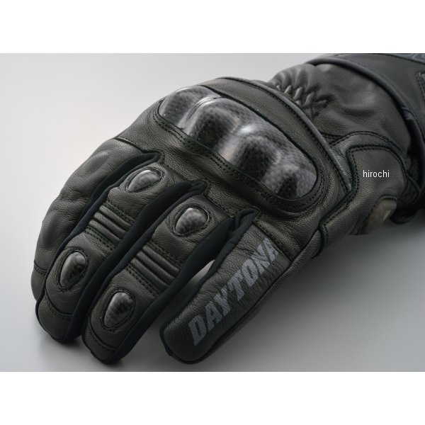 スポーツロングタイプのウインターグローブ登場各所にプロテクターを装備し、多面に本革を使用することで安全性を確保したスポーティなグローブ。ロング丈でスポーツグローブらしさと防寒性を高めたモデル。ナックルプロテクターはフローティング構造を採用し、指また部にストレッチ素材を採用。ウインターグローブの操作性の悪さを低減し、長時間のライディングでも握力低減を防ぎます。防水防風フィルム入り。・素材:本革(やぎ革)(表地) 防水透湿フィルム(中間層) ポリエステル(中綿) ポリエステル(裏地)・プロテクター:カーボン・パームスライダー:TPR・タッチパネル対応・防風防水透湿・対応シーズン:秋・冬※タッチパネル対応はグローブへの密着度や個人差により感度にばらつきがあります。※経年劣化や使用状況により防水フィルムが破損することがあります。